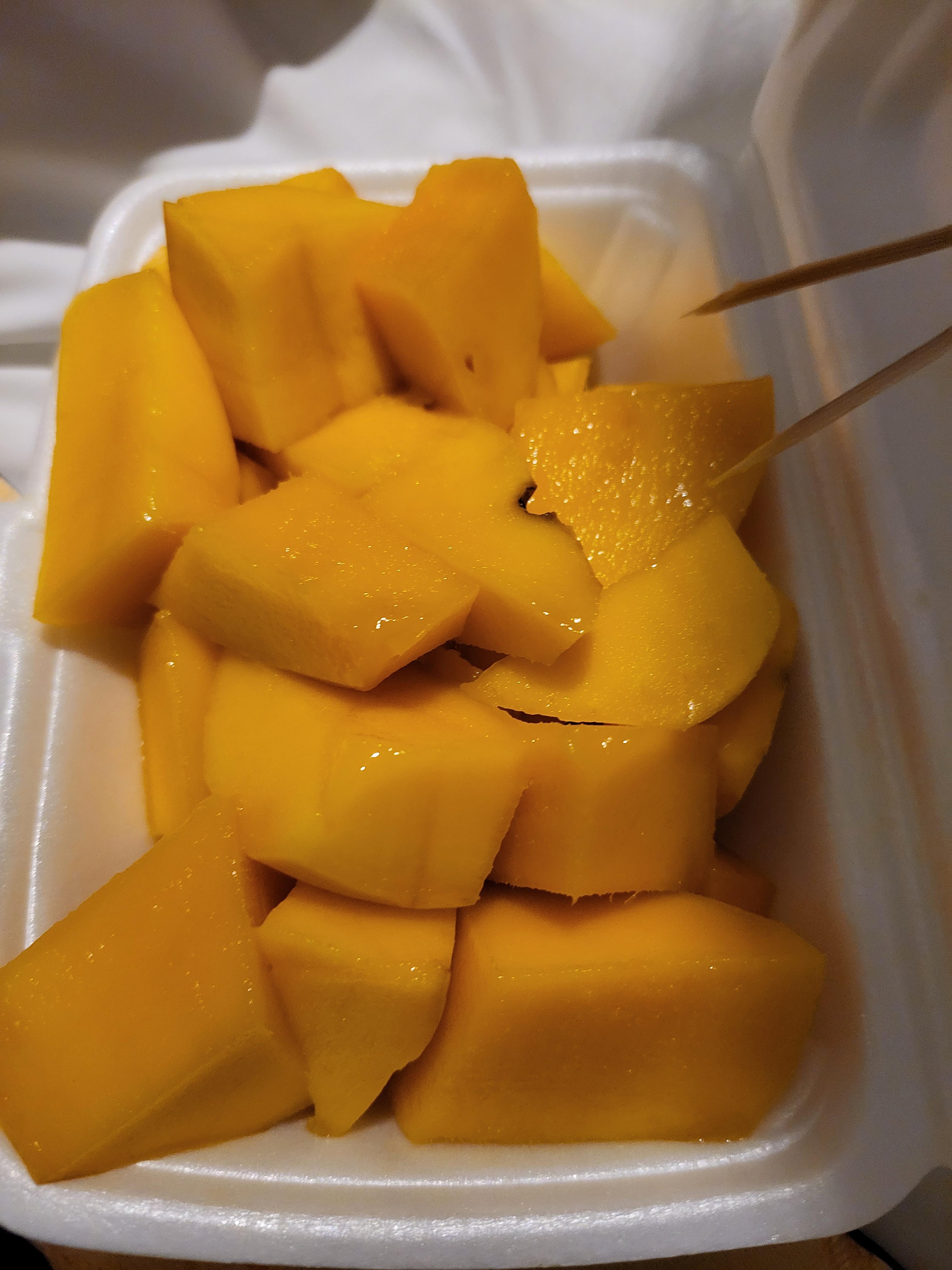 추가 후식과 야식으로는 한시장 82번 가게에서 주인 할머니가 골라주신 망고를 먹었습니다.