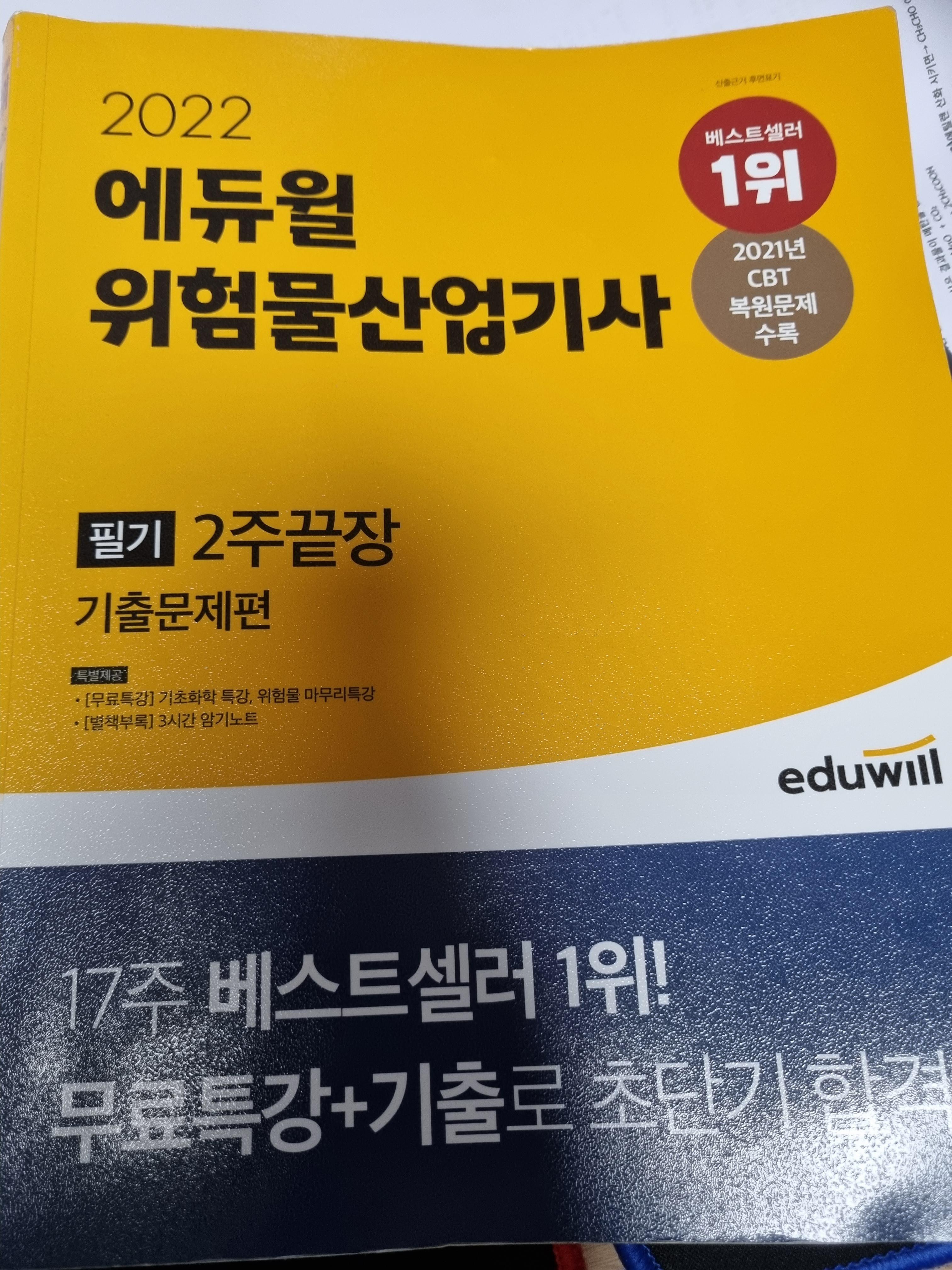 에듀윌 교재는 위의 사진과 같이 이론편과 기출 편으로 나뉘어 있습니다. 유튜브나 인터넷 검색으로 위험물산업기사 필기 합격방법에 대한 질문을 올리면 대부분 필기책은 찢어 버리세요라고 되어있었어요. 아니 개념도 없이 어떻게 문제만 풀어서 합격해?라는 의문을 가지고 저는 이론 편을 시작했었어요.... 이게 바보 같은 생각이었죠.