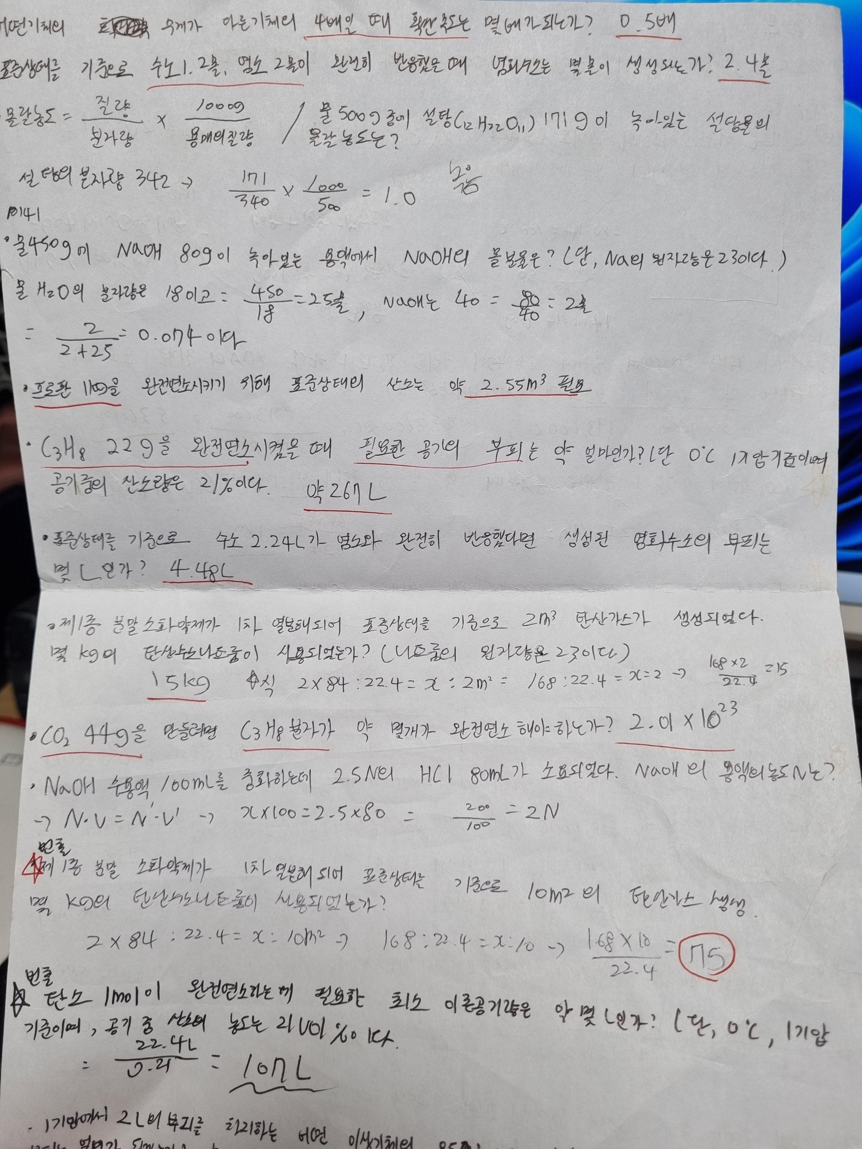그리고 저는 필답만 보고 문제 답 문제 답 공부할 때 계산문제는 버렸습니다. 과감히 버려도 됩니다. 하지만 항상 나오는 빈출 계산문제는 꼭 저처럼 오답노트에 문제 답을 적어두세요. 그리고 석출문제는 항상 나오고 보다 보면 개념이 어느 정도 잡힐 수 있어요. 유튜브에 문제 계산방법을 보다 보면 이해가 될 수 있어요! 이런 식으로 저는 한 문제 두 문제 정도 이해를 했고 나머지는 그냥 문제랑 답을 외웠어요. 기출문제만 돌리다 보면 답이 일치하는 게 절반이상이 넘었어요! 실제로 시험 칠 때 가서 공기이론 구하는 방법 문제가 나왔는데 외운 그대로 나왔어요 ㅋㅋㅋㅋ